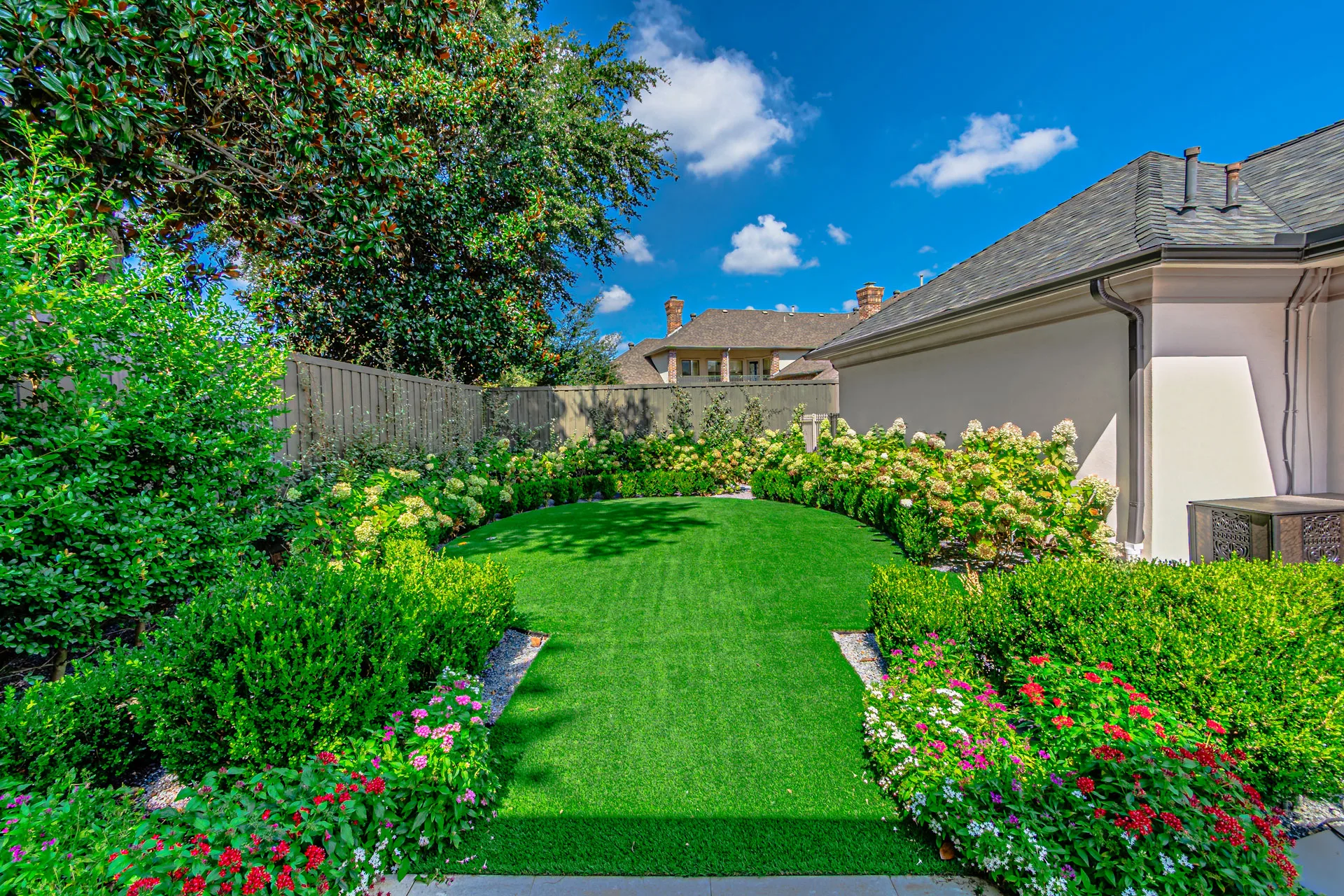 This project showcases a complete front and backyard transformation. Our team redesigned the entire landscape from the ground up, incorporating custom stonework, vibrant planting, and modern outdoor accents. The result is a seamless blend of function and beauty that enhances curb appeal and outdoor living. We’re proud to continue maintaining this property to keep it looking pristine year-round.